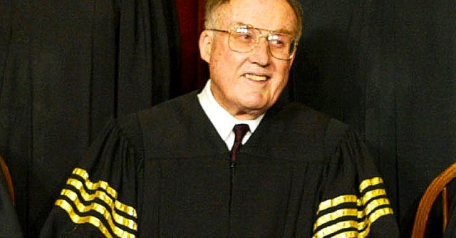 That year, then Chief Justice William Rehnquist walked into the courtroom wearing four gold stripes on each of his sleeves. I stole the photograph above from photographer Mark Wilson and Getty Images. (If I’m prosecuted for this, I’ll claim some sort of journalist privilege, and as a backup plan – I’ll pray it’s only a misdemeanor.)