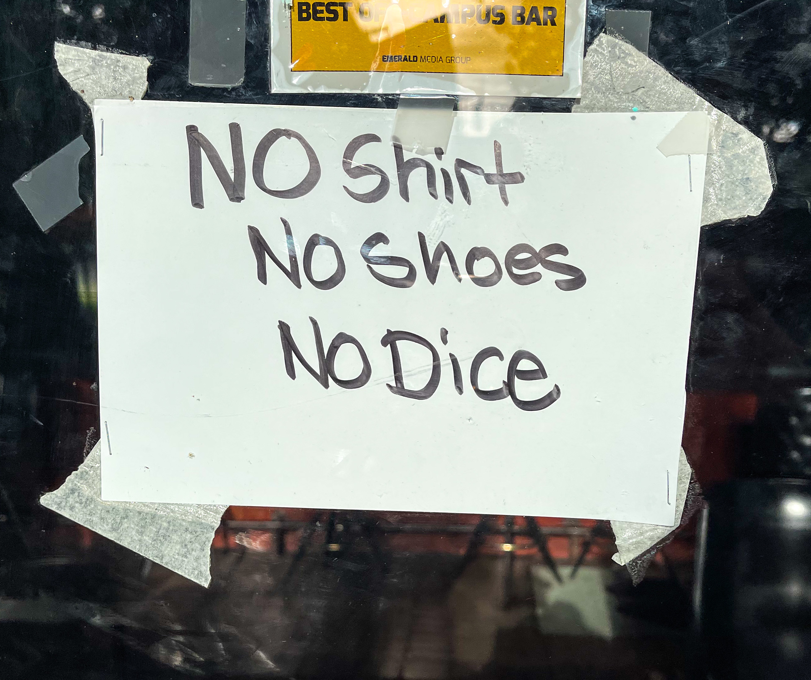 There’s a bar two doors down from my office in downtown Eugene with one of these signs, but they’ve put a twist on it –