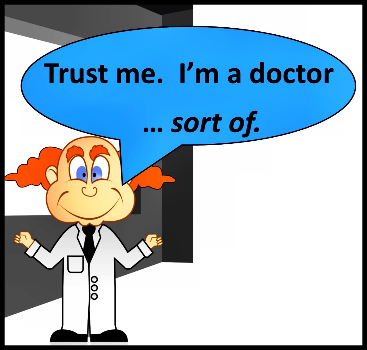 After careful consideration and deep soul searching, I have decided to quit my job and become a doctor. No, I didn’t say go to medical school, don’t be silly. I’m much too old for that. I’ve just decided to become a doctor, as in start telling people I’m a doctor and begin practicing medicine. I’m ready for the challenge the practice of medicine provides and, of course, the heavy burden of this serious responsibility.